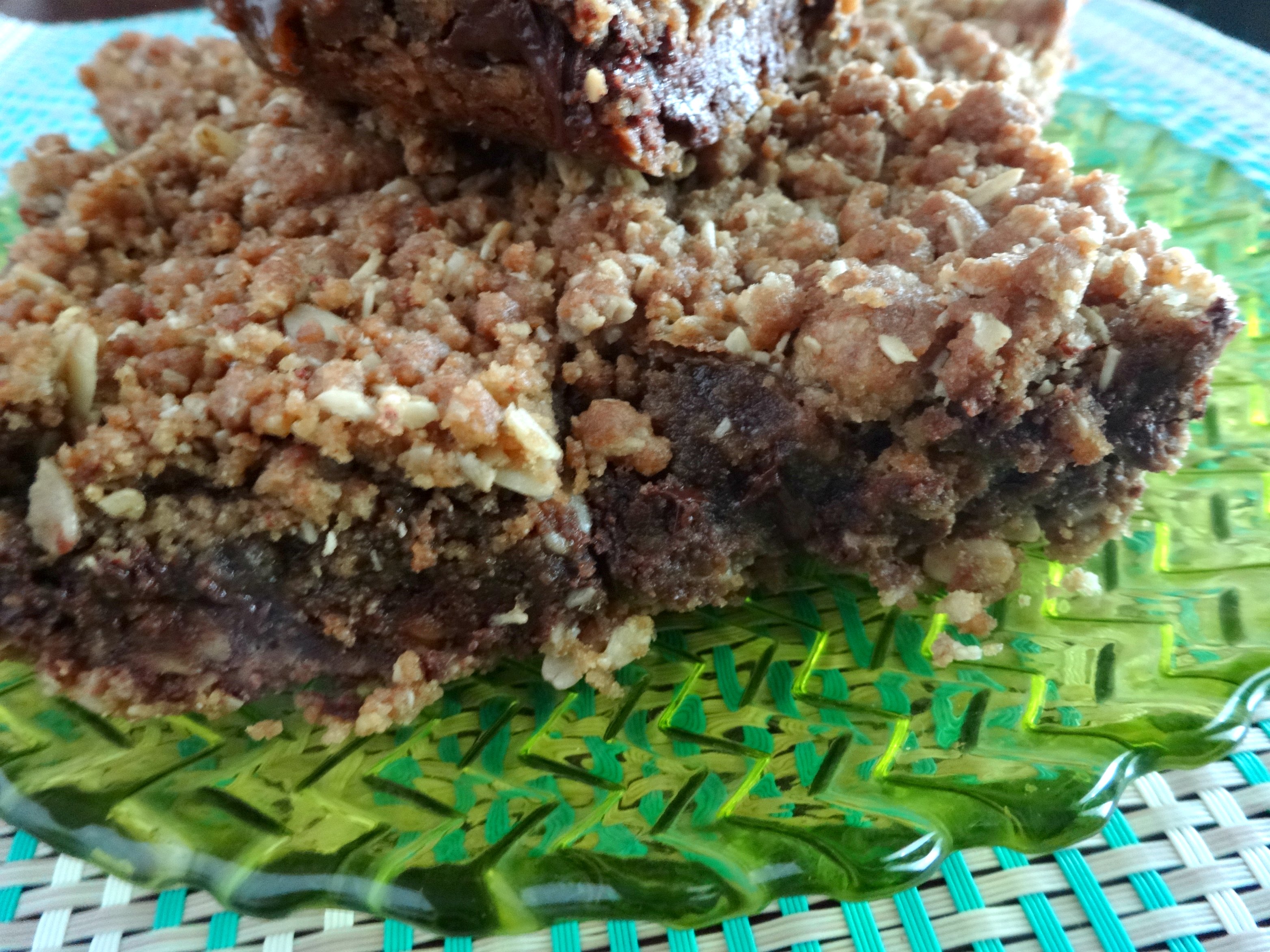 Estas barritas están llenas de cosa buenera, el relleno es de chocolate y caramelo, con una cobertura de avena, harina y azúcar. Ingredientes muy básicos y simples. Es una bomba dulce que va perfecta con un café negro. Combinación perfecta.