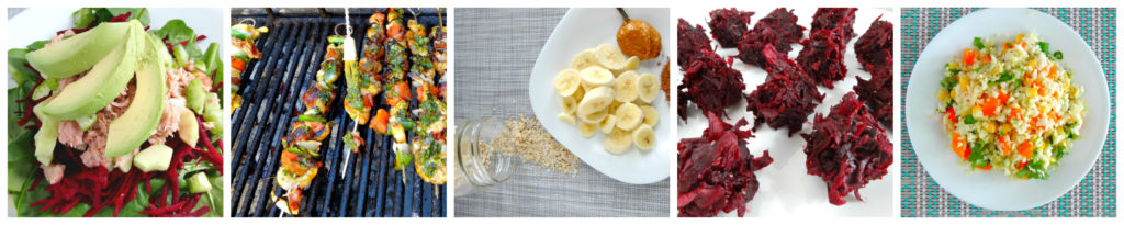 Brochetas de camarón con pesto